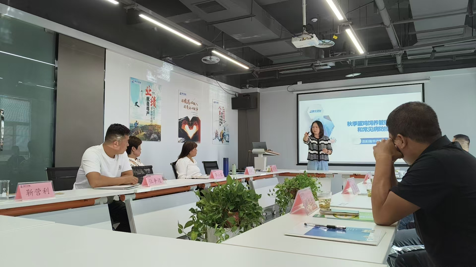 隨后,公司特邀的王芳老師為大家?guī)砹艘粓?chǎng)精彩的講座,主題為 “秋季蛋雞飼養(yǎng)管理要點(diǎn)和常見病防控”。王芳老師在蛋雞養(yǎng)殖領(lǐng)域深耕多年,具有深厚的理論基礎(chǔ)和豐富的實(shí)踐經(jīng)驗(yàn)。她深入淺出地講解了秋季蛋雞飼養(yǎng)管理的關(guān)鍵要點(diǎn)。